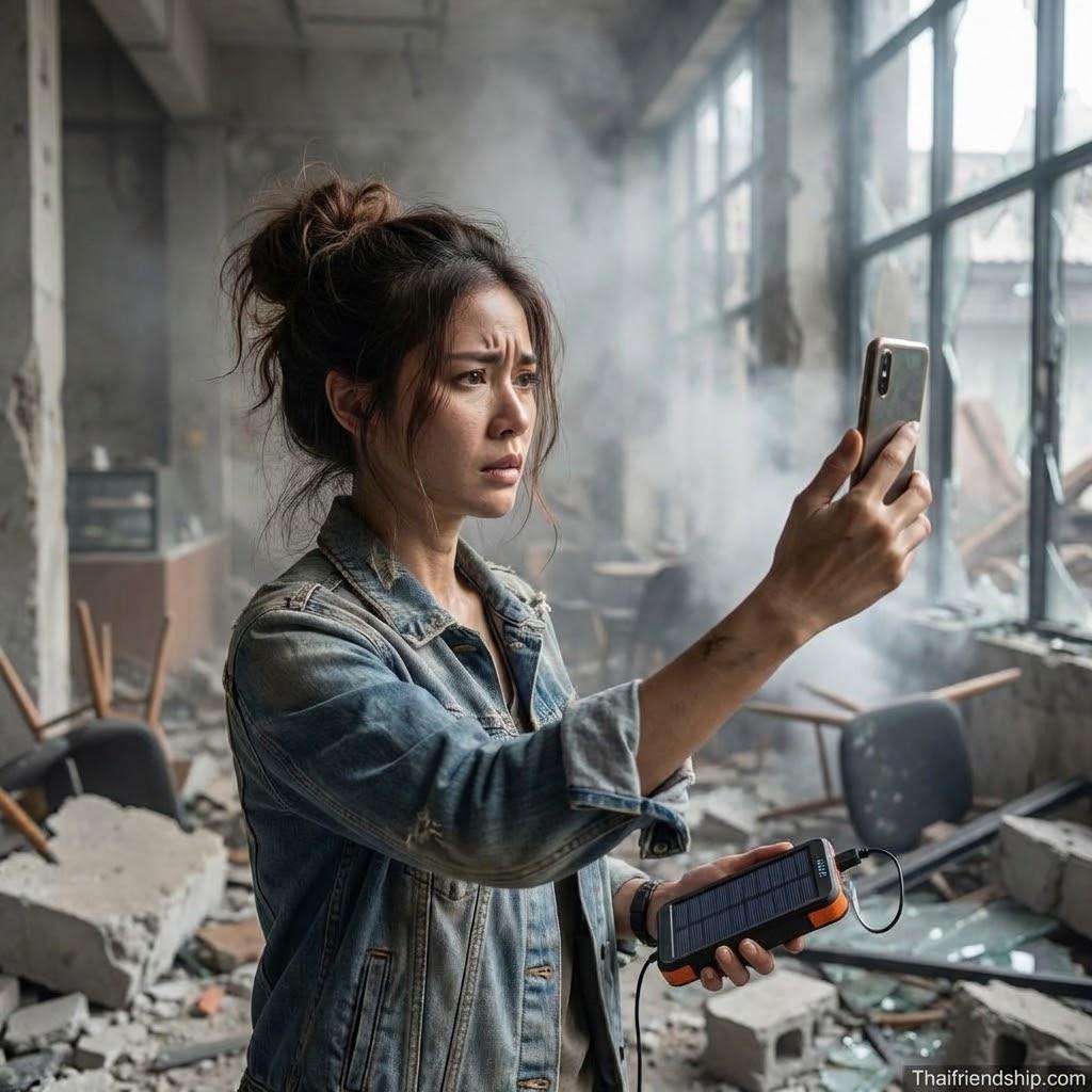 ภาพที่คุณจะเห็นคือ ชาวมิลเลนเนียลกำลังวิ่งพล่านหาที่ชาร์จแบตฯ พลังงานแสงอาทิตย์ ไม่ใช่เพื่อติดต่อขอความช่วยเหลือนะ แต่เพื่อ "อัปเดตสถานะบนโซเชียล!" พร้อมแคปชั่นเก๋ๆ ว่า "โลกแตกแล้วจ้า #SaveWorld #ApocalypseVibes" พวกเขาจะพยายามเอาตัวรอดด้วยความรู้จาก Google และ Pinterest